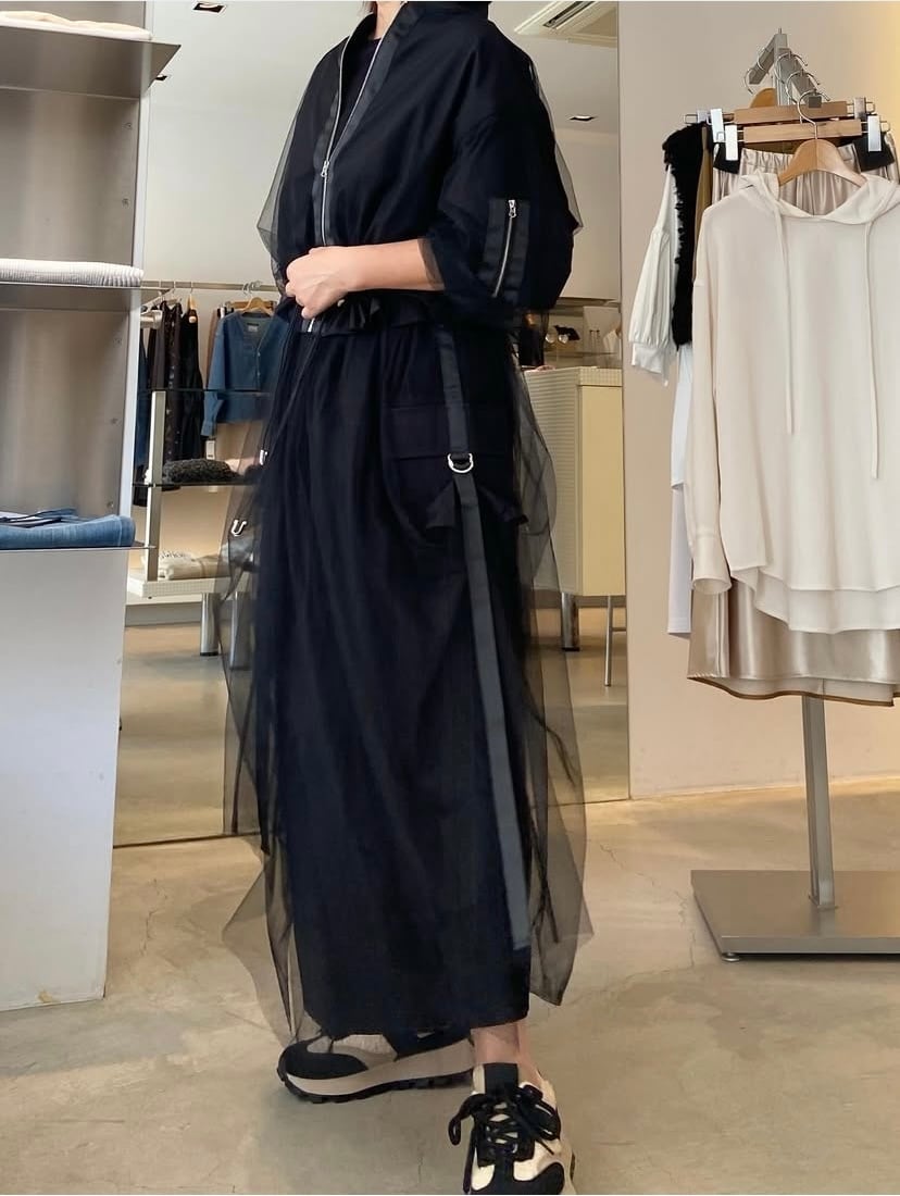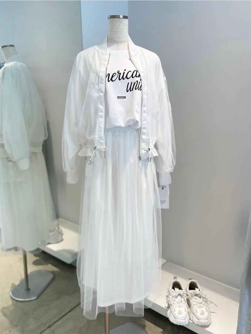 軽やかなチュール素材が女性らしい魅力を引き立ててくれるブルゾン。