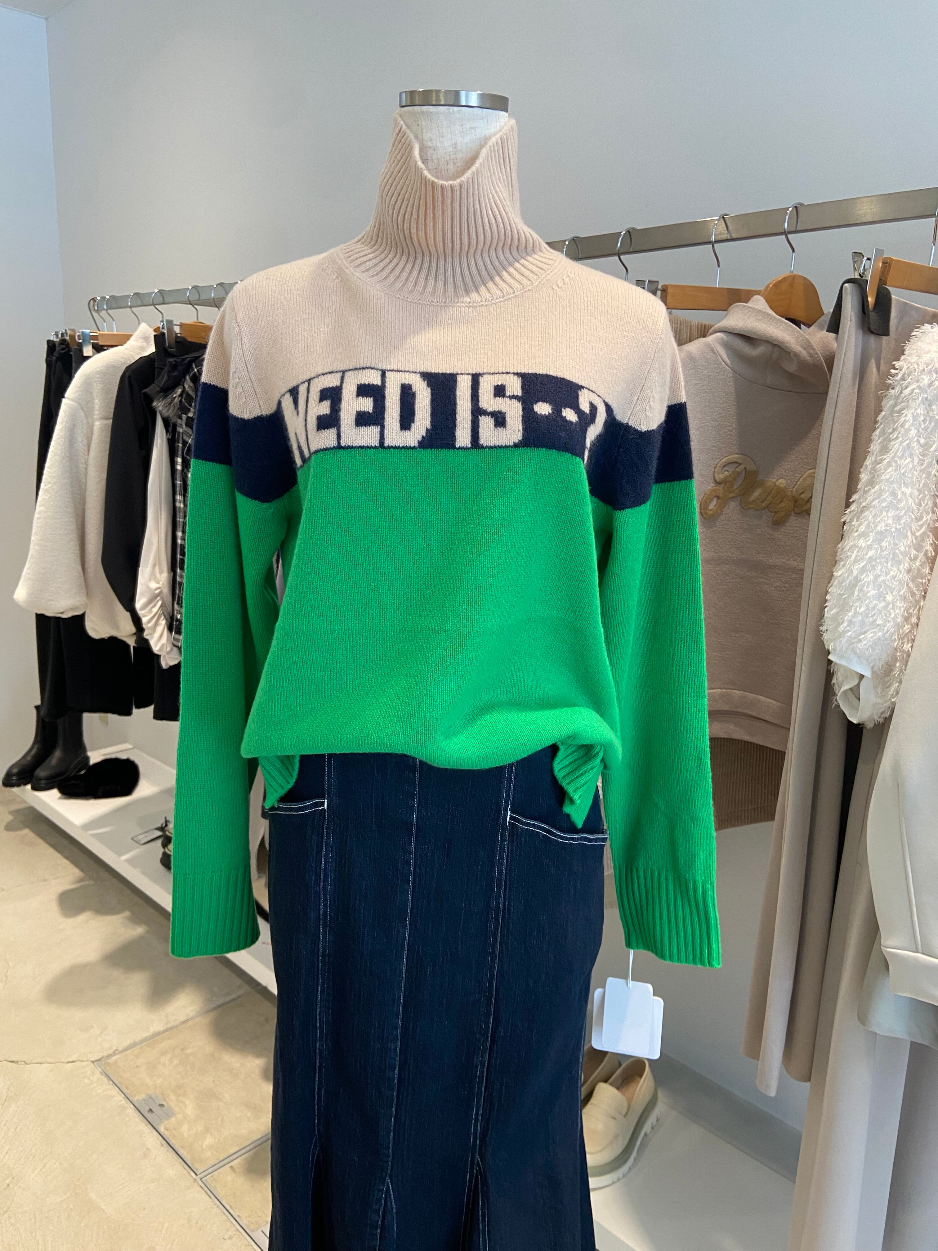 カシミヤ ロゴ 配色ニット